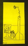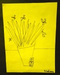 I demonstrated how to draw what they see without lifting the pencil off the paper. We used rough copy paper to practise and then when they felt comfortable the students produced a final copy that was trimmed and then mounted on black construction paper. The following examples were done by grade 3s.