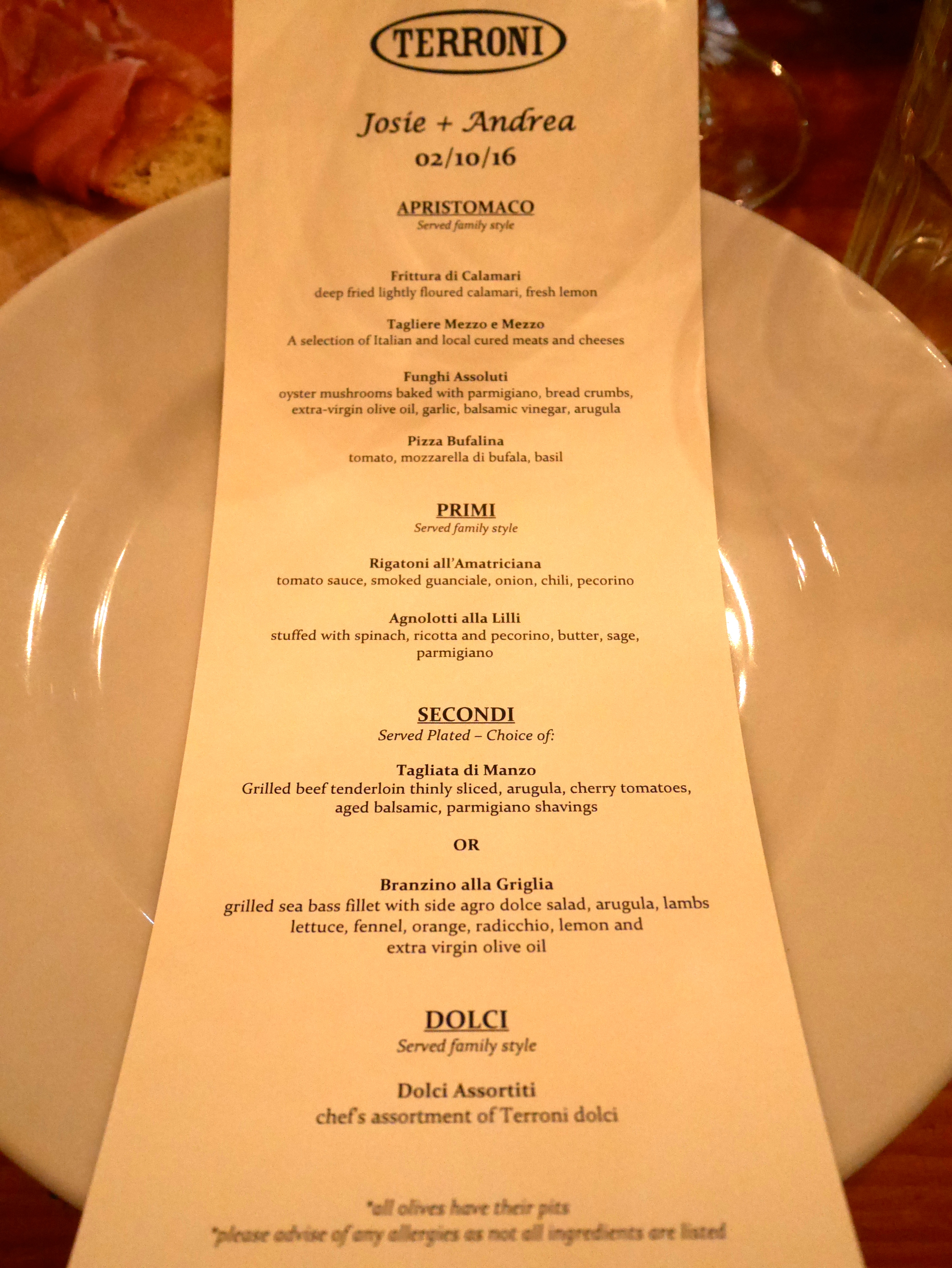 In 2016, our remaining two children decided to tie the knot. Andrea and Josie were married on their 10th anniversary of their first date, February 10th. It was a small wedding with family and close friends. They were married at City Hall and had the reception in a lovely Italian restaurant.