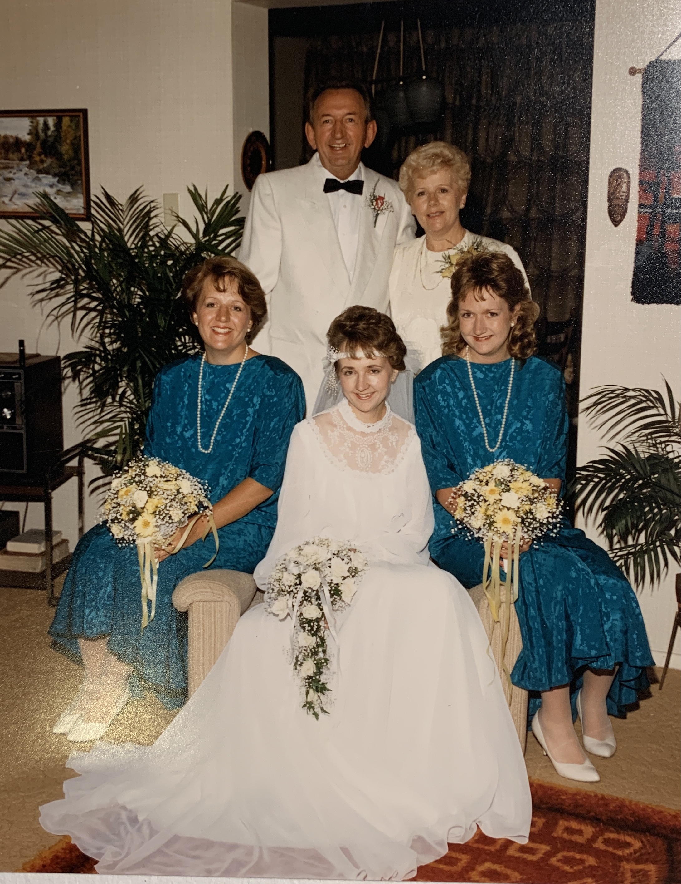 I’m always surprised what pops up when I type the number in the search box. This week the surprise was an old photo of my sister’s wedding. My youngest sister and I were the matrons of honour and our parents were standing behind us.