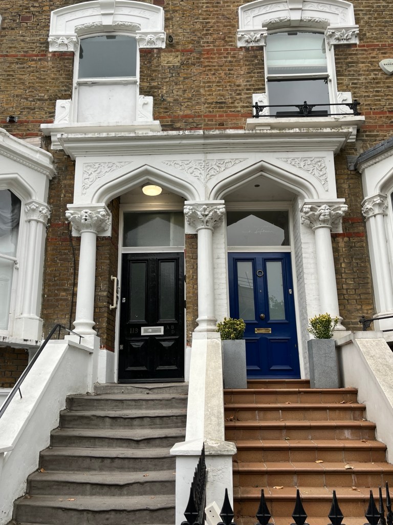 Our flat in London was situated on Petherton Rd. in London. It is part of the Islington area and was a mere 10 minute walk to our son’s flat in Highbury. We would frequently walk down Petherton to catch the overground rail to go to the Storehouse in one direction and Hampstead in the other. Here are a few of the doorways we would pass.