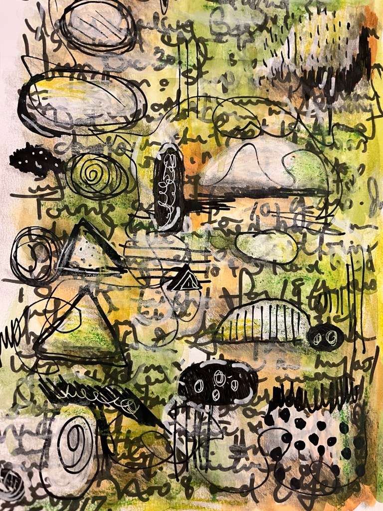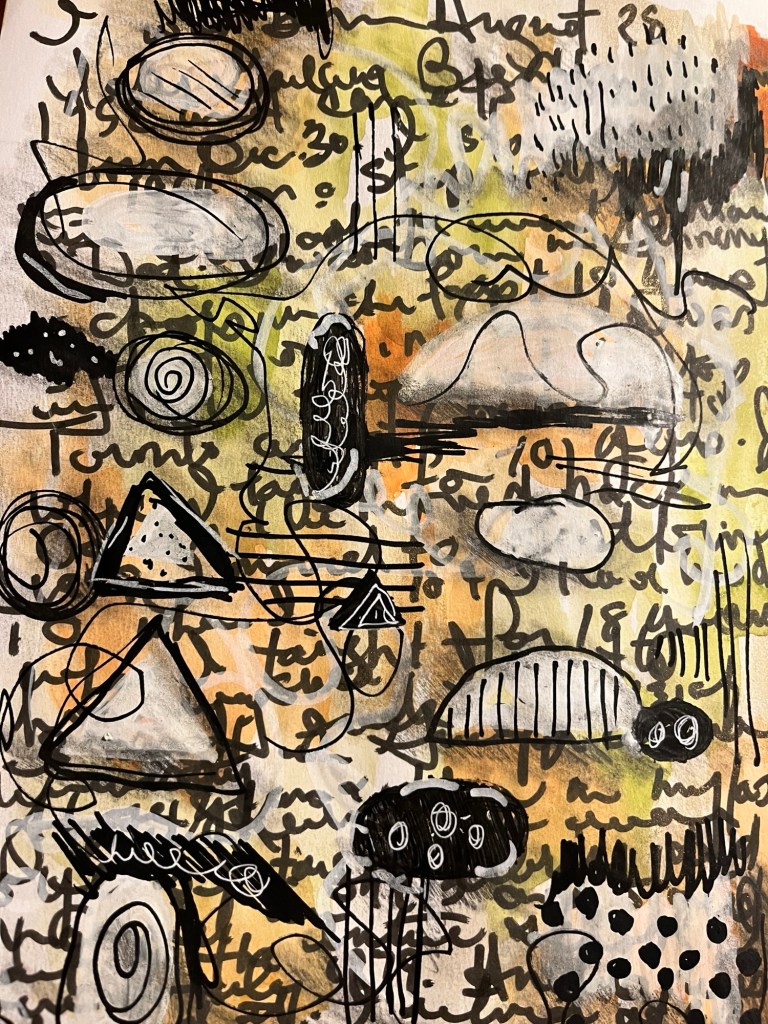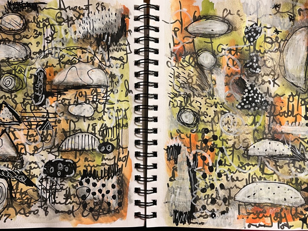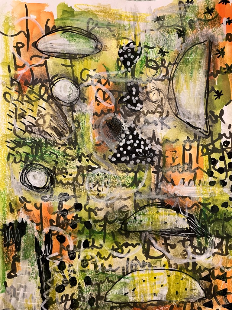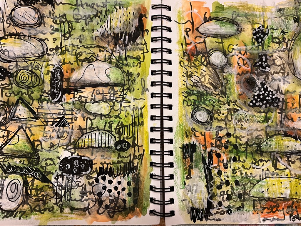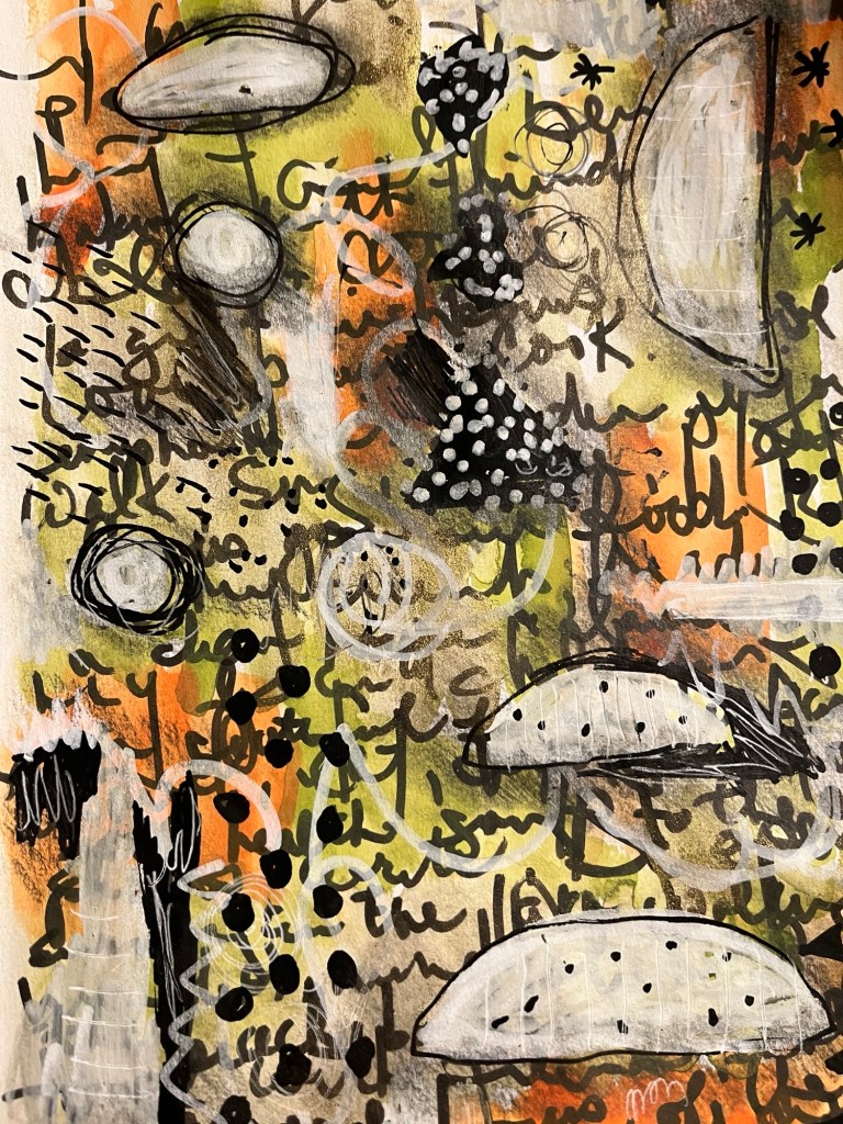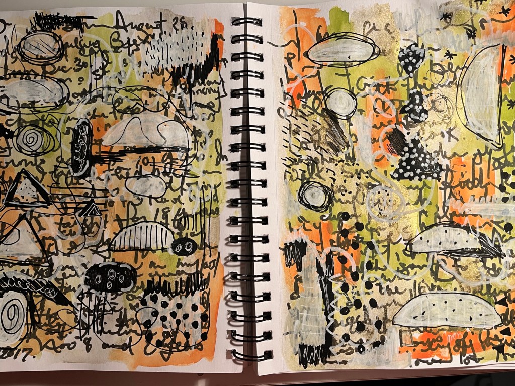 I watched day 4 of Gabbi’s Art of Flow earlier this evening. Instead of painting on a canvas I decided to start in my art journal.