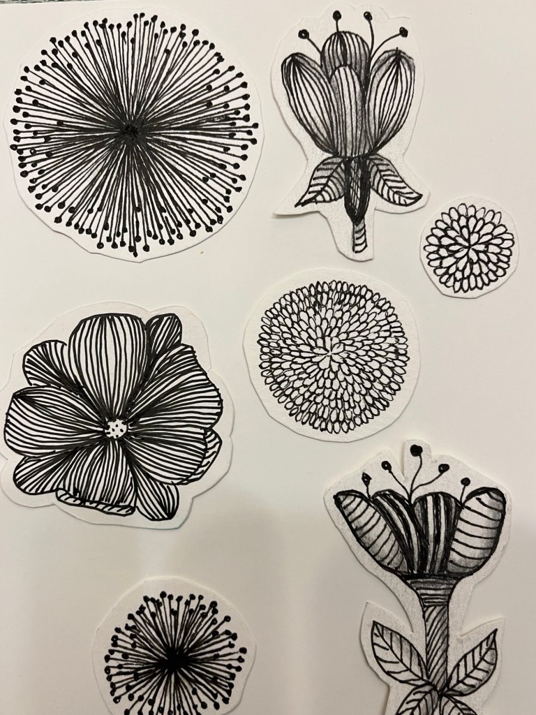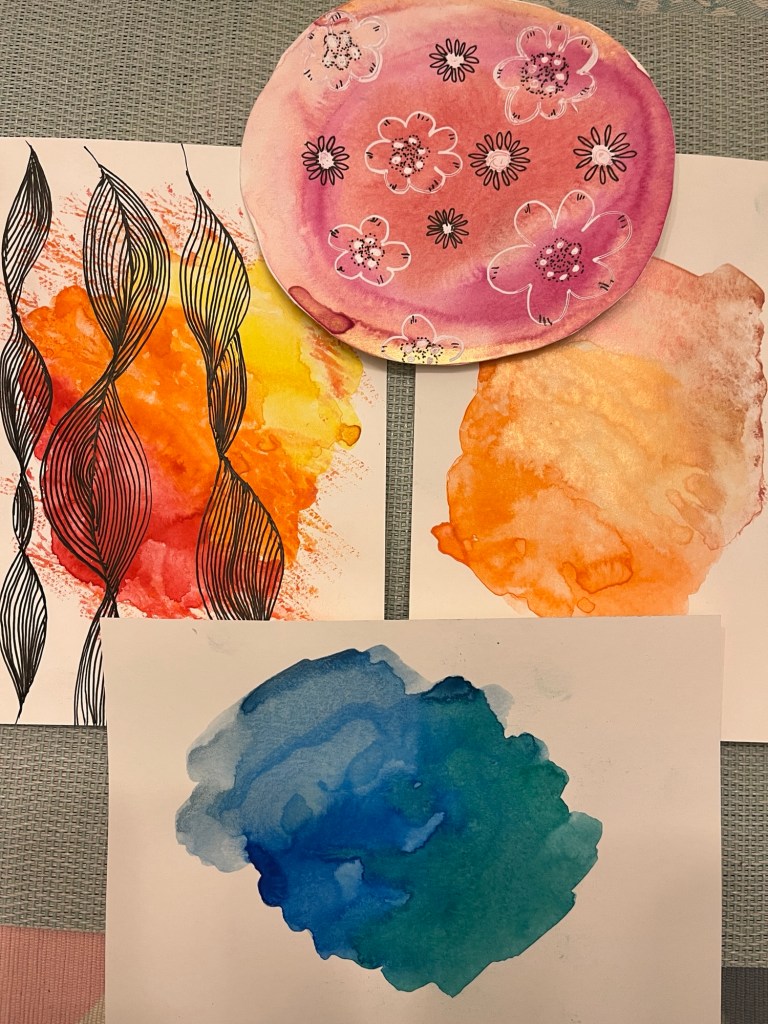 ….making watercolours washes and floral sketches in ink for future cards