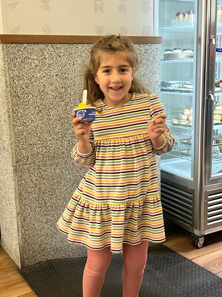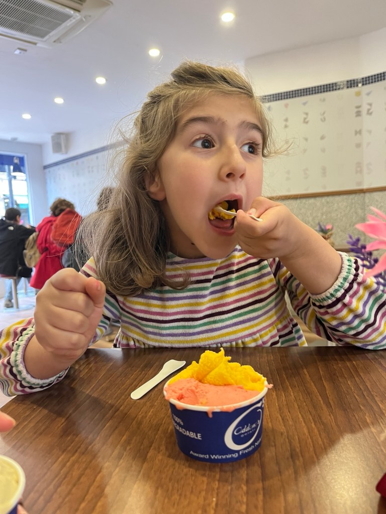 The best part of the walk for Sevin was the stop at the gelato shop.