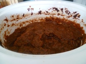 When I went to the farmers’ market on Saturday I asked which apples would make the best apple butter. They recommended MacIntosh or Royal Gala or a combination of both. I opted to try the combination. I used about 40 apples in total. The original recipe called for 25 to 30. I think the overall amount will depend on the size of the apples and the size of your slow cooker. The one I used was one of the bigger slow cookers on the market. Here is where I found the recipe: