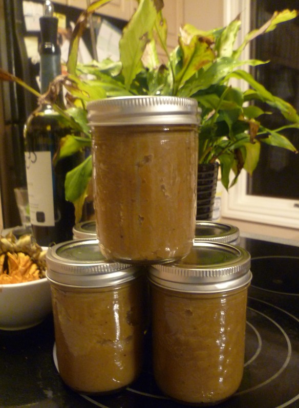 It was mid afternoon before we actually started making the pear butter. Turns out I had to make another trip to buy star anise, lemons and fresh ginger. It took us about 4 hours to cut up the pears, cook them, grind them and then cook them some more.