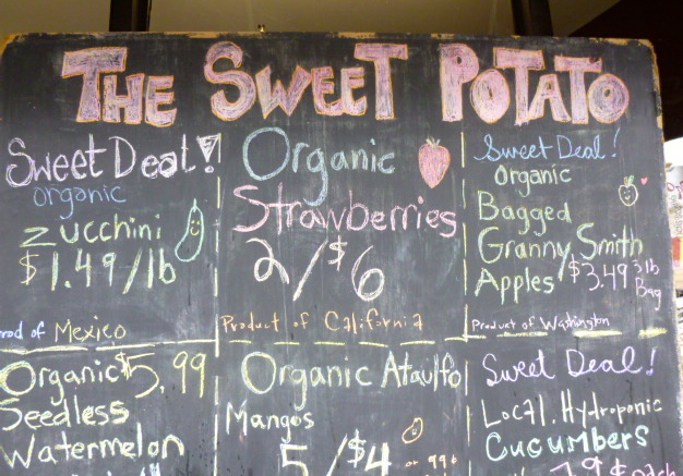 After our walk/run my husband and I picked up our daughter and her partner and headed over to The Junction. It was recently renamed The Junction Triangle but I haven’t heard anyone use the new name. We parked the car and checked out the old record store, the art store, Articulations, and then we crossed the street to The Sweet Potato. We picked up some kale, avocado, almond milk and a few other healthy foods.