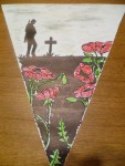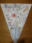 When I got home tonight I checked out a lot of art blogs and was so inspired that I finally pulled out my paints and had a great time. I created 3 mono prints on yupo paper and worked on making 3 examples of peace banners (using the recycled banners from Art Junction). This year for our Remembrance Day assembly we decided to decorate the gym with peace flags created by the children.