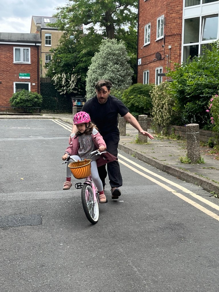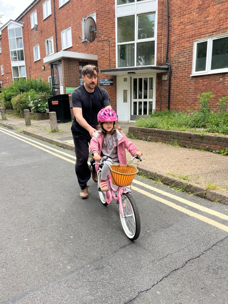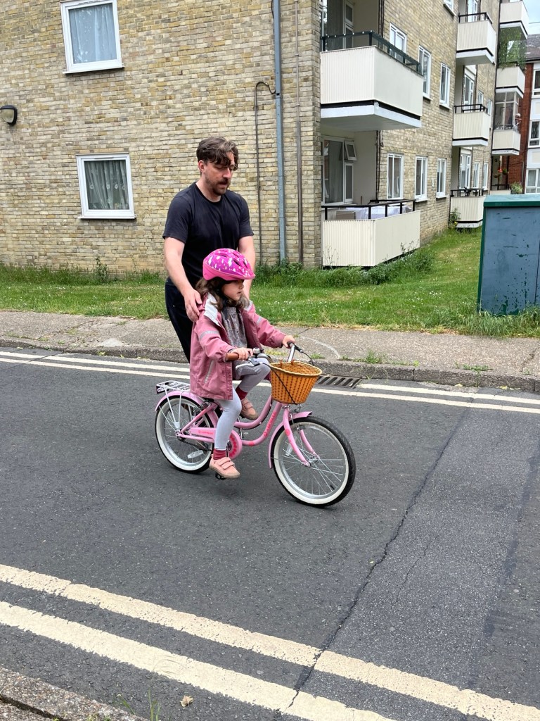 After Andrea arrived we took Sevin outside to practise learning how to ride her bike. She took a few spins of the driveway with her father close behind before we walked to Argos to pick up some pillows that we had ordered earlier in the day.