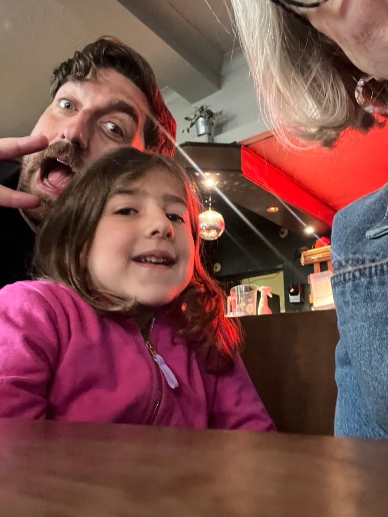 After missing one bus because the driver didn’t stop, waiting for a second bus and then having to walk a ways we finally got home, put away the food and made our way to the pub with the whole family.