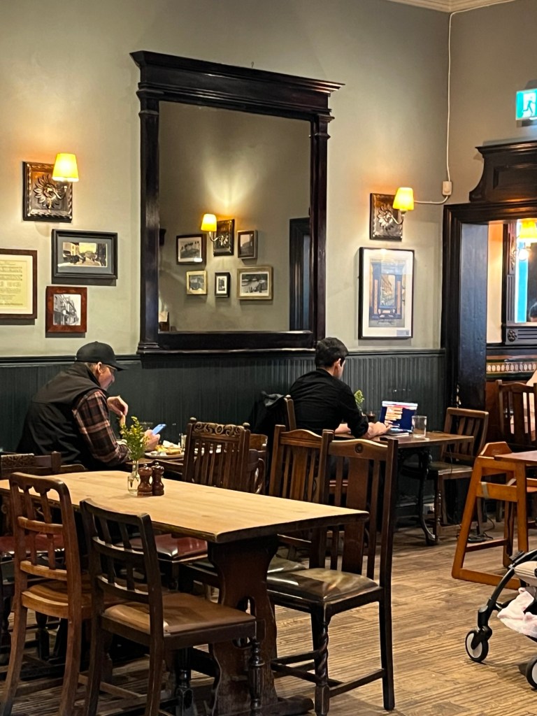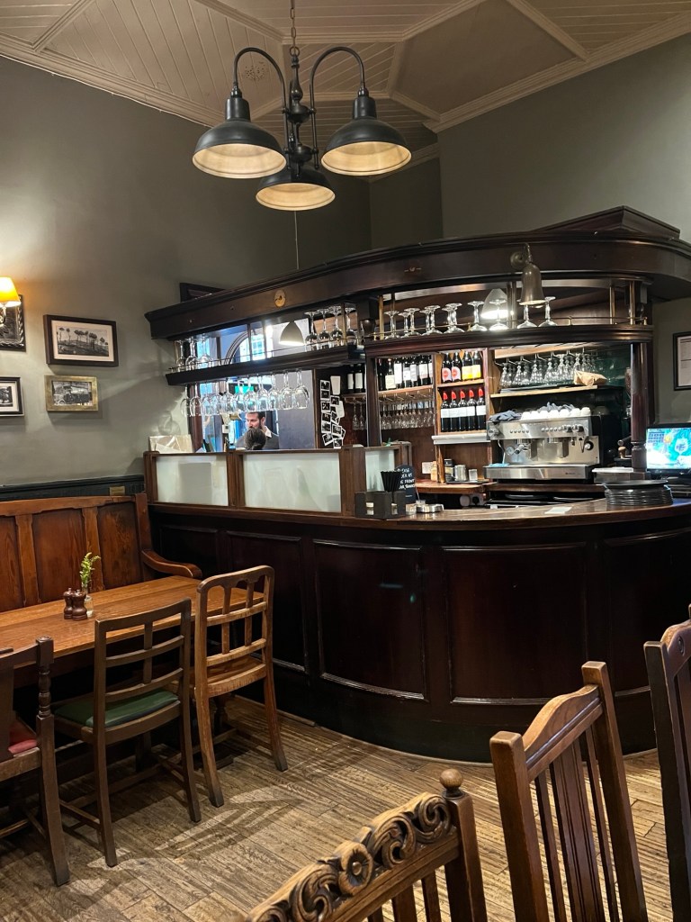 We had a perfect lunch in The Flask….cauliflower soup with truffle oil, baked Camembert with chutney and pickled fennel on sourdough bread.