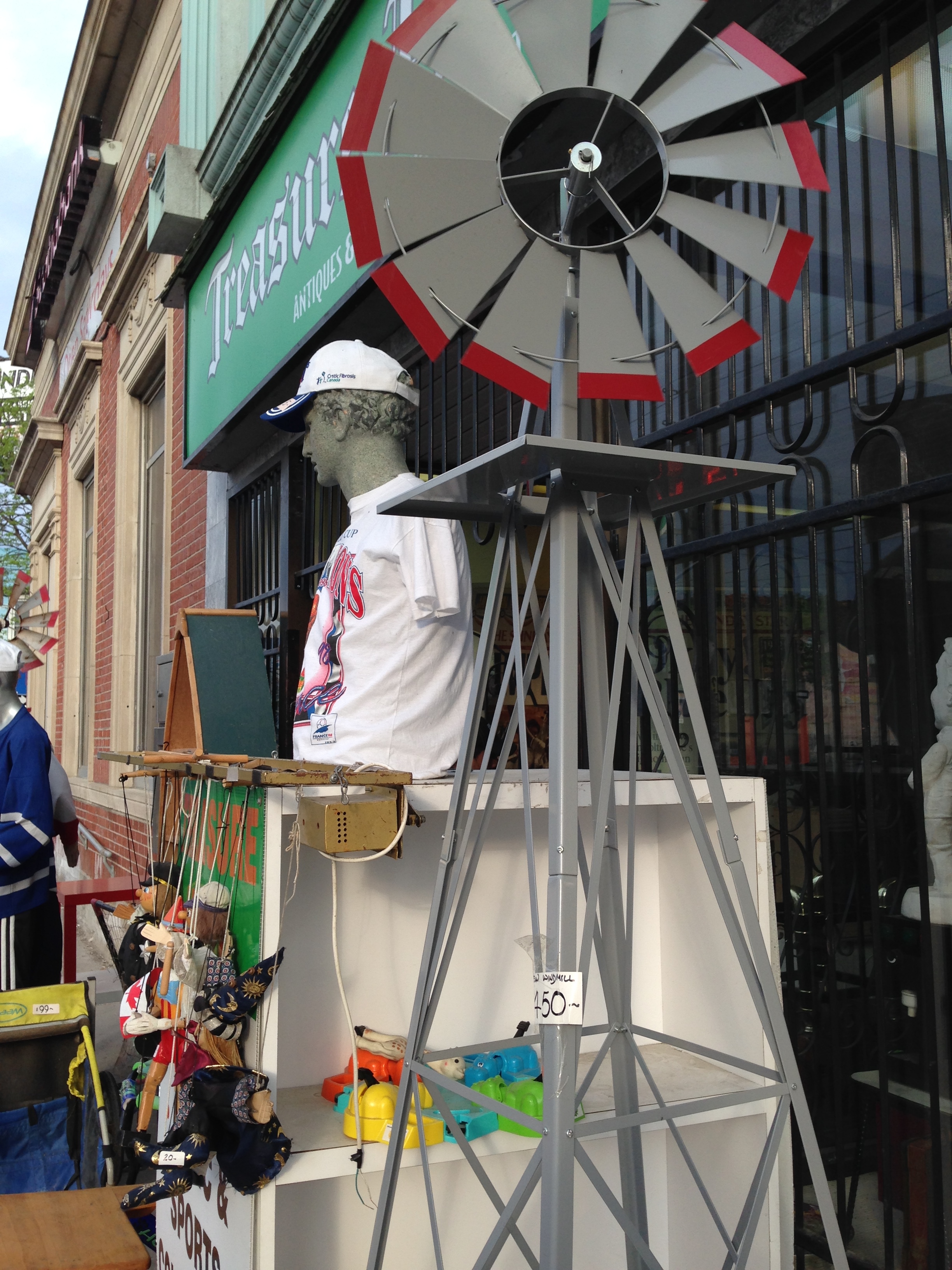 It started out with one mannequin out front and then quickly morphed to more, usually dressed in some hockey gear, plus a collection of sundry items like windmills and old chairs. I thought this was a perfect collection for Cee’s Odd Ball Challenge.