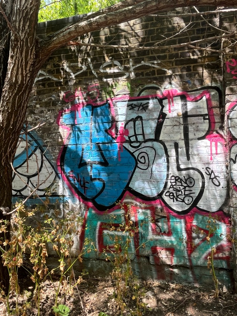 Walking towards the subway station in my daughter’s neighbourhood of the Junction Triangle I came across the following street art: