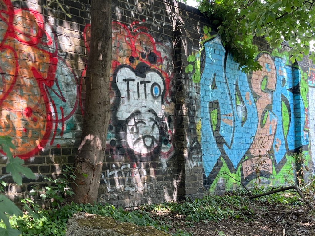 Street art is everywhere in London but especially on the walls surrounding construction sites. These panels are directly across from Clissold Park.