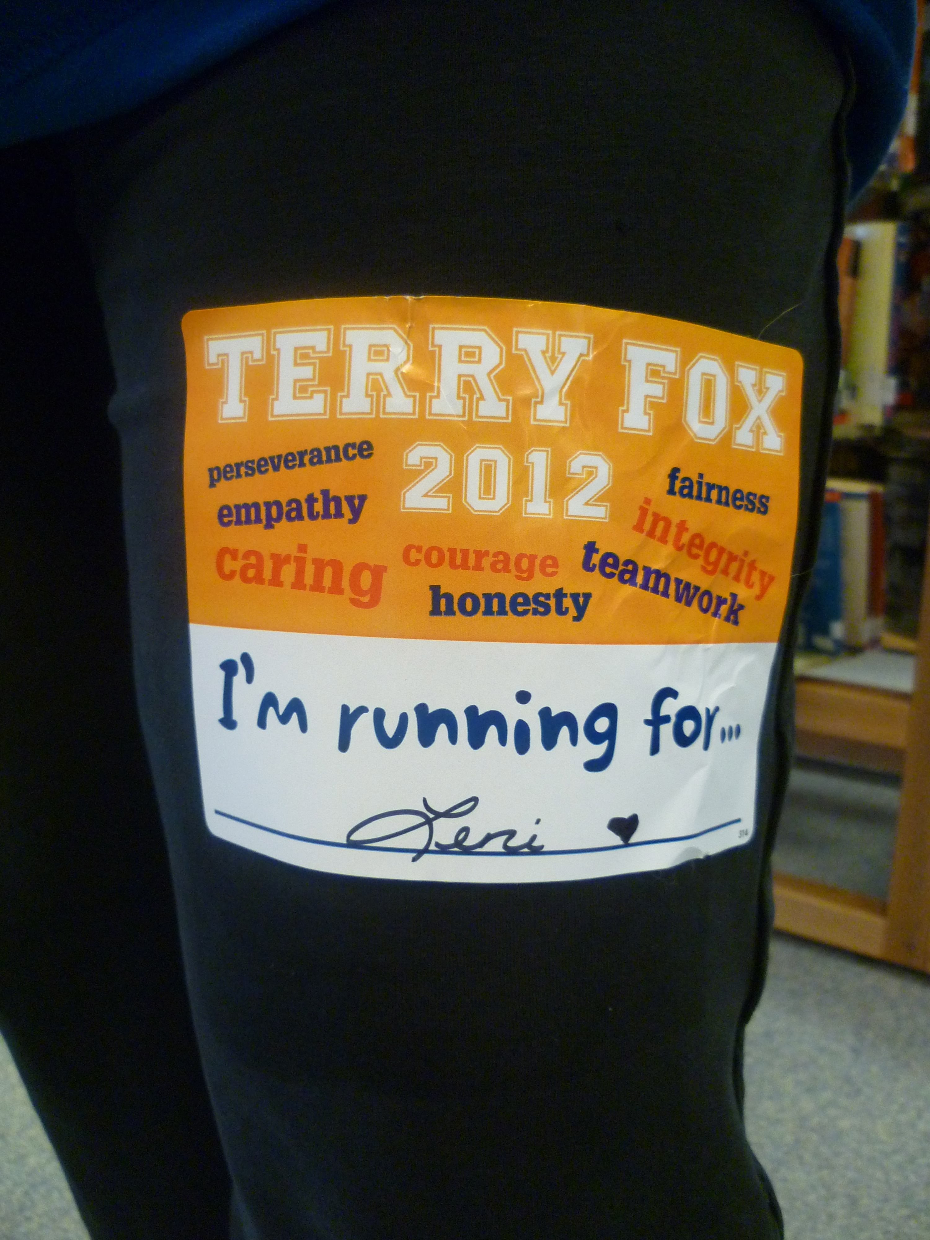 We had our Terry Fox Run today. All the children were assembled in the gym and our principal read a short story about Terry Fox (first year she didn’t cry). We went outside and raised the special flag and then 400 children, all their teachers and some of the parents started walking/running around the school.
