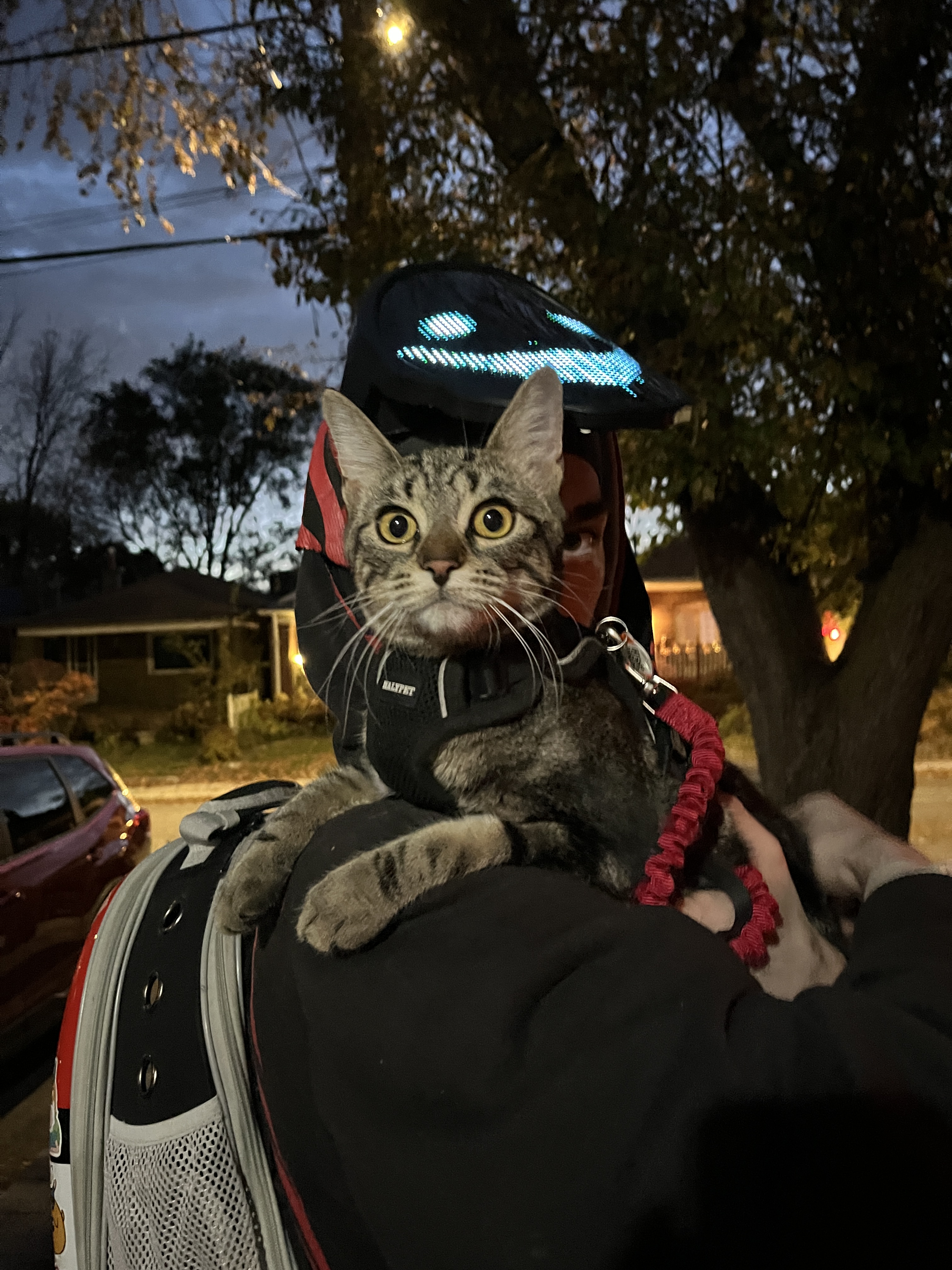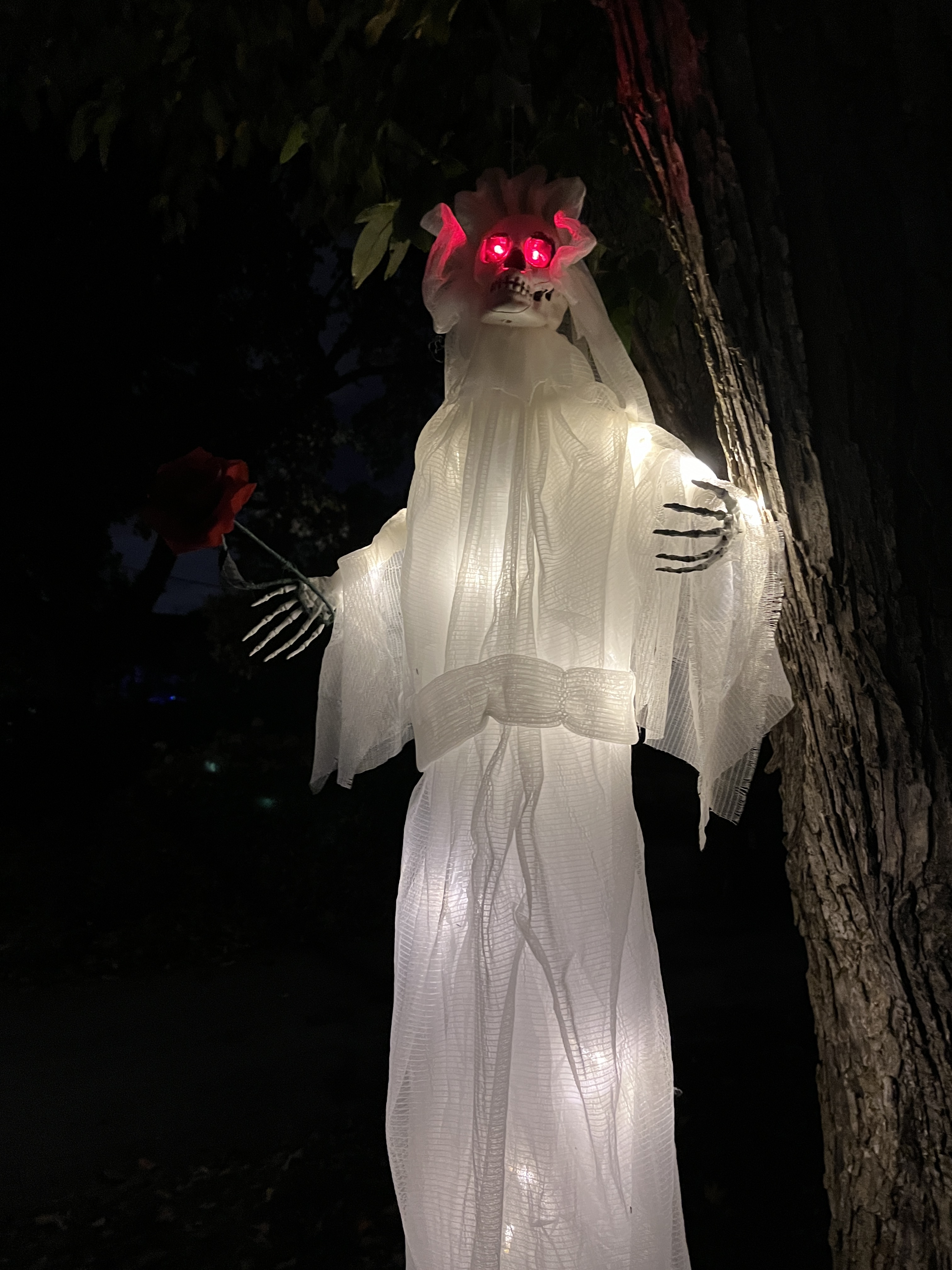 Yesterday was Hallowe’en and I did manage to get out to buy treats and some new decorations. Last year we had a record year for kids coming to our door. This year we set a new record and shelled out candy to 106 kids before we ran out of treats. We also had a first this year….a cat came to our door with her owner.